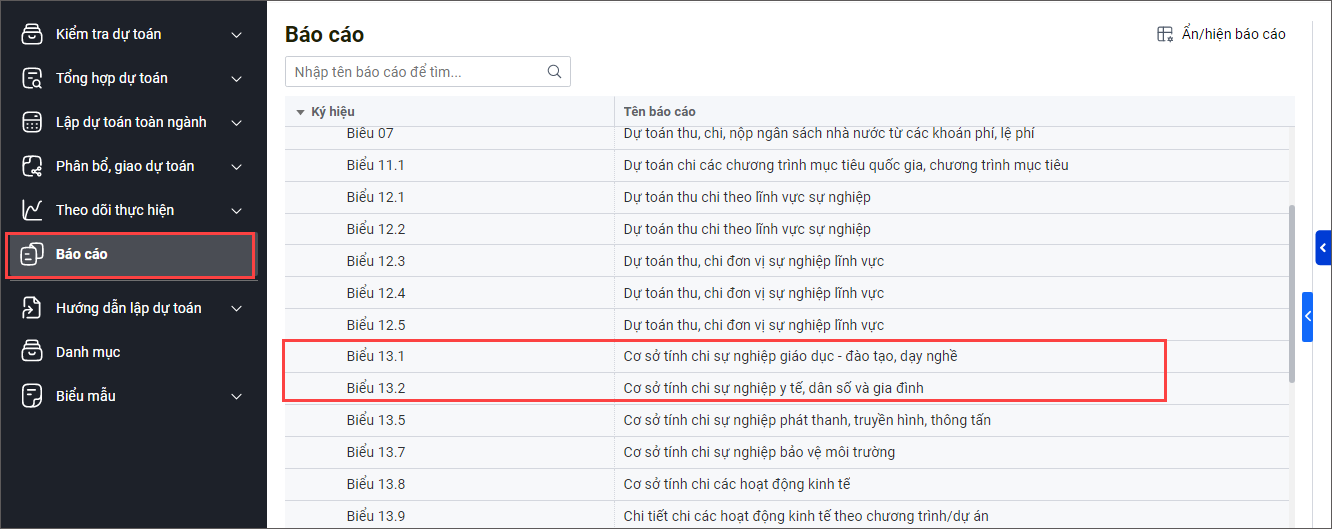 Kể từ phiên bản R9: Đơn vị chủ quản, Sở tài chính Quảng Ninh có thể in được Biểu 13.1: Cơ sở tính chi sự nghiệp giáo dục – đào tạo và dạy nghề, Biểu 13.2: Cơ sở tính chi sự nghiệp y tế.