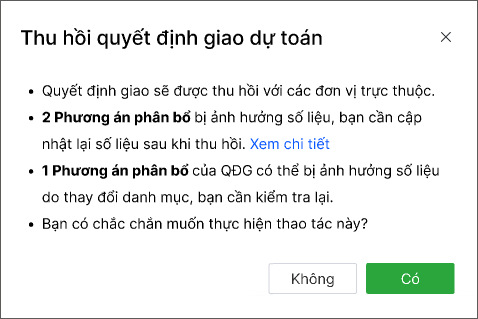 - Nhấn Có nếu vẫn muốn thực hiện Thu hồi.