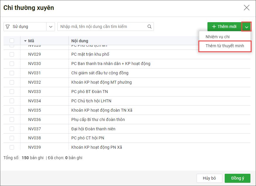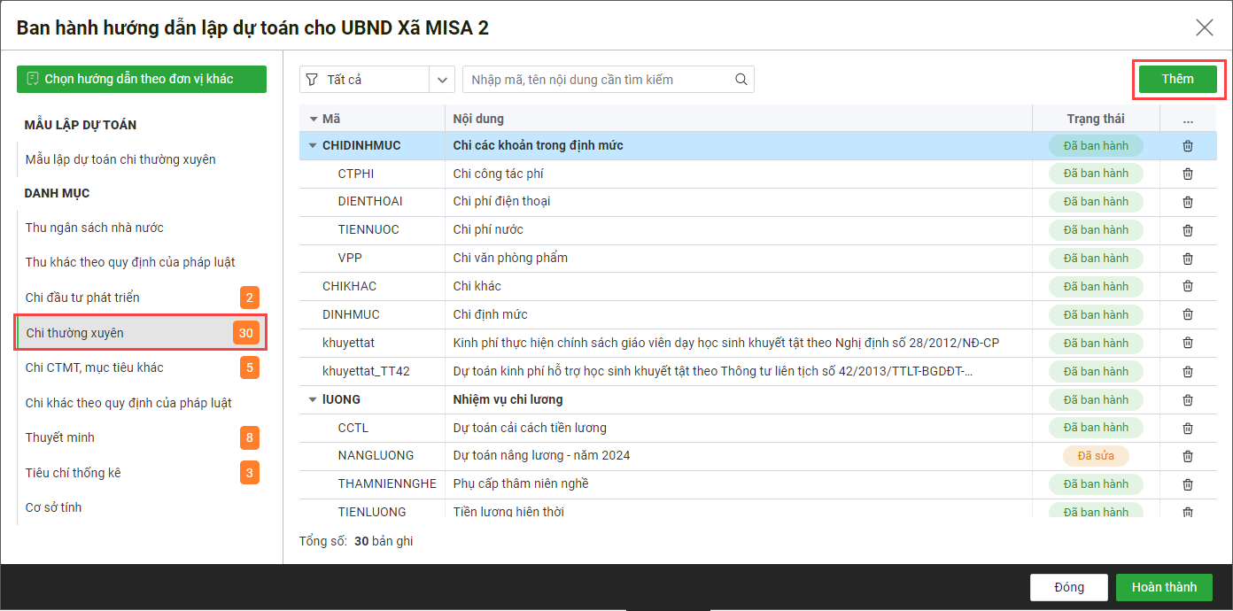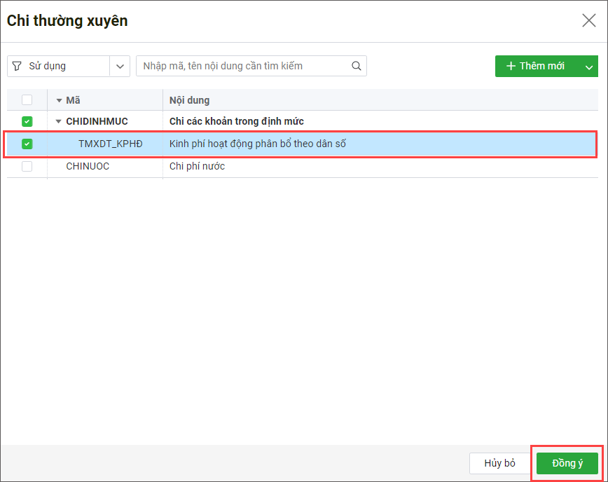3. Chọn danh mục Chi thường xuyên. Nhấn Thêm.