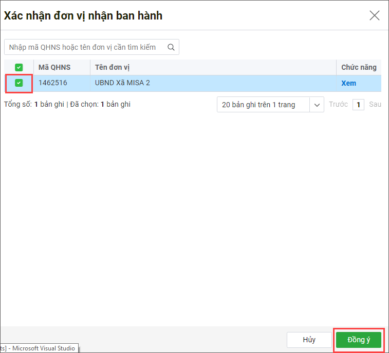 10. Tích chọn các đơn vị cần ban hành, nhấn Đồng ý.