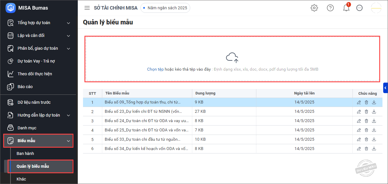 Giúp Sở tài chính có thể theo dõi, lưu trữ các báo cáo dự toán dưới dạng file Excel trên phần mềm.