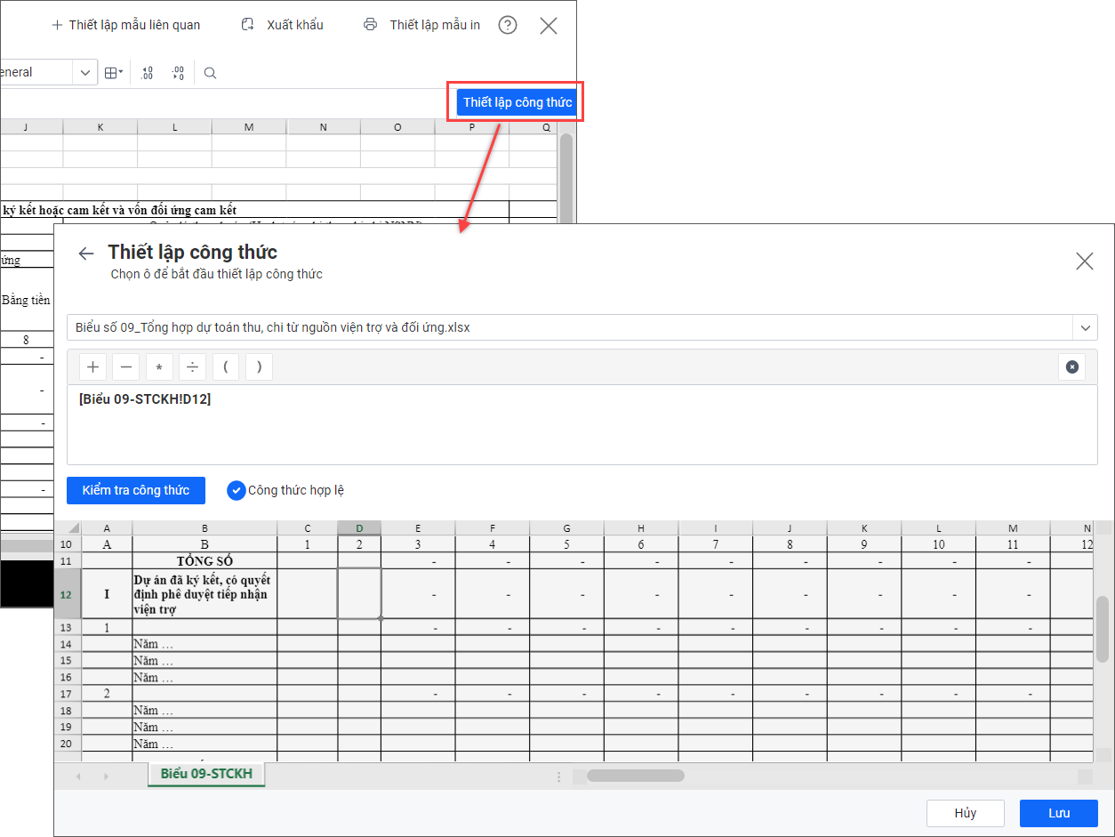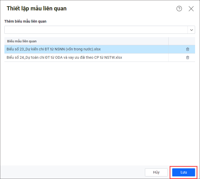 4. Trường hợp cần tạo công thức chung giữa các biểu mẫu, nhấn vào Thiết lập mẫu liên quan để chọn các mẫu liên quan.