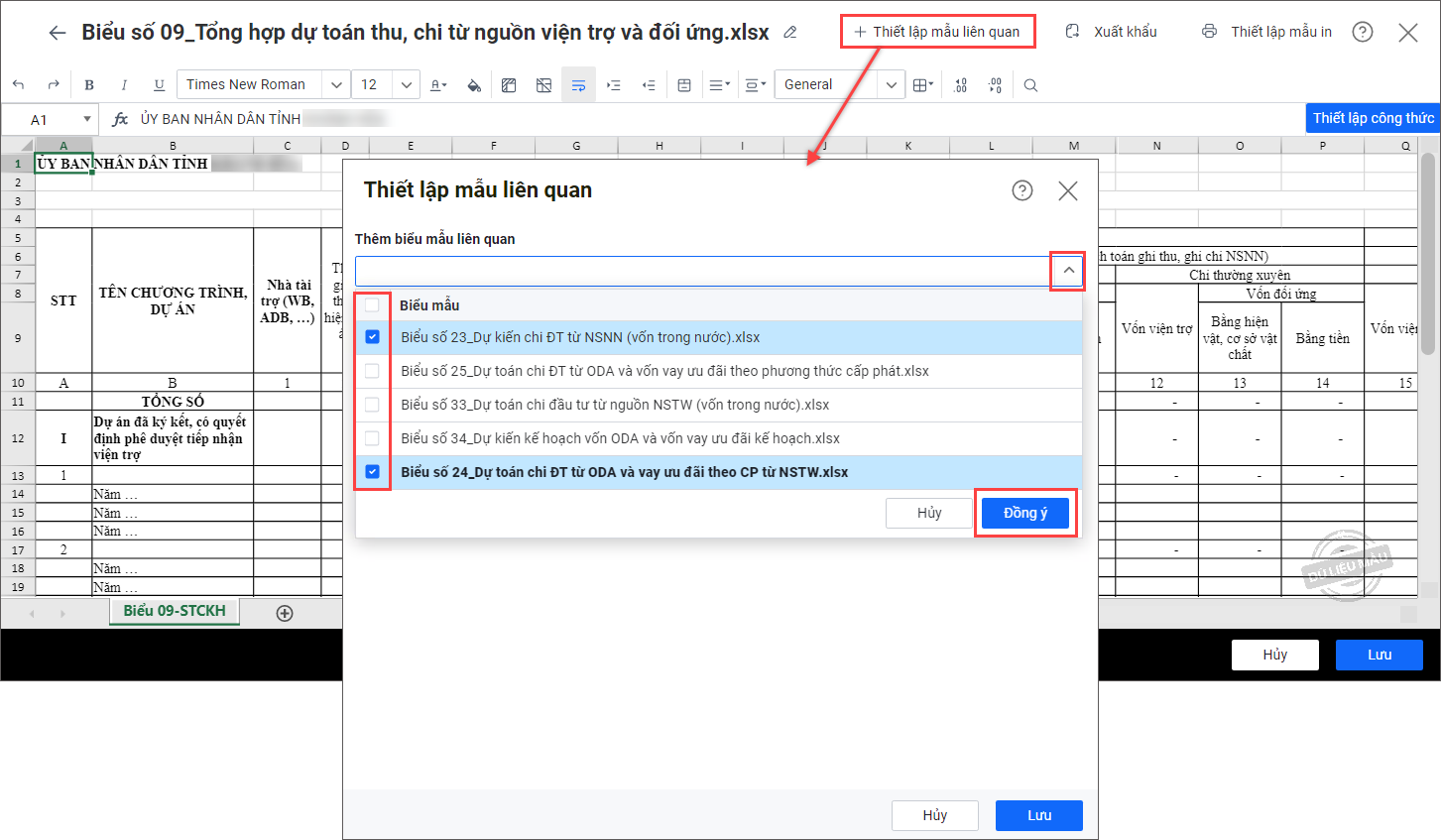 - Tích chọn các biểu mẫu liên quan. Nhấn Đồng ý.