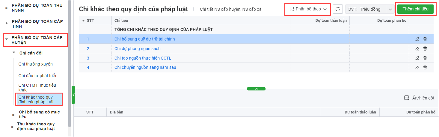3. Để thêm chỉ tiêu cần phân bổ, nhấn Thêm chỉ tiêu.