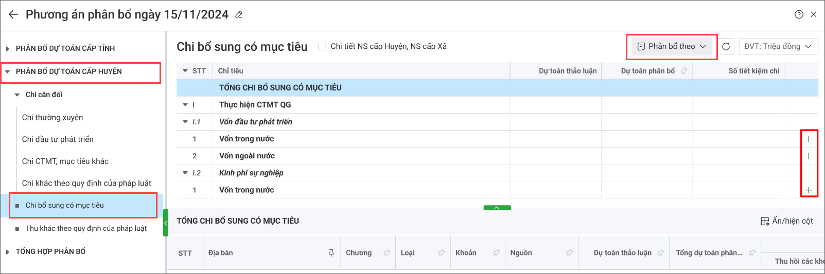 3. Để thêm nội dung phân bổ, nhấn Thêm chỉ tiêu.