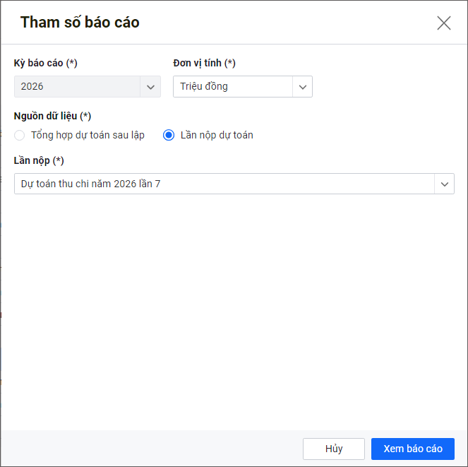• Khai báo tham số in và nhấn Xem báo cáo.