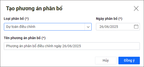 - Nhập Tên phương án phân bổ.