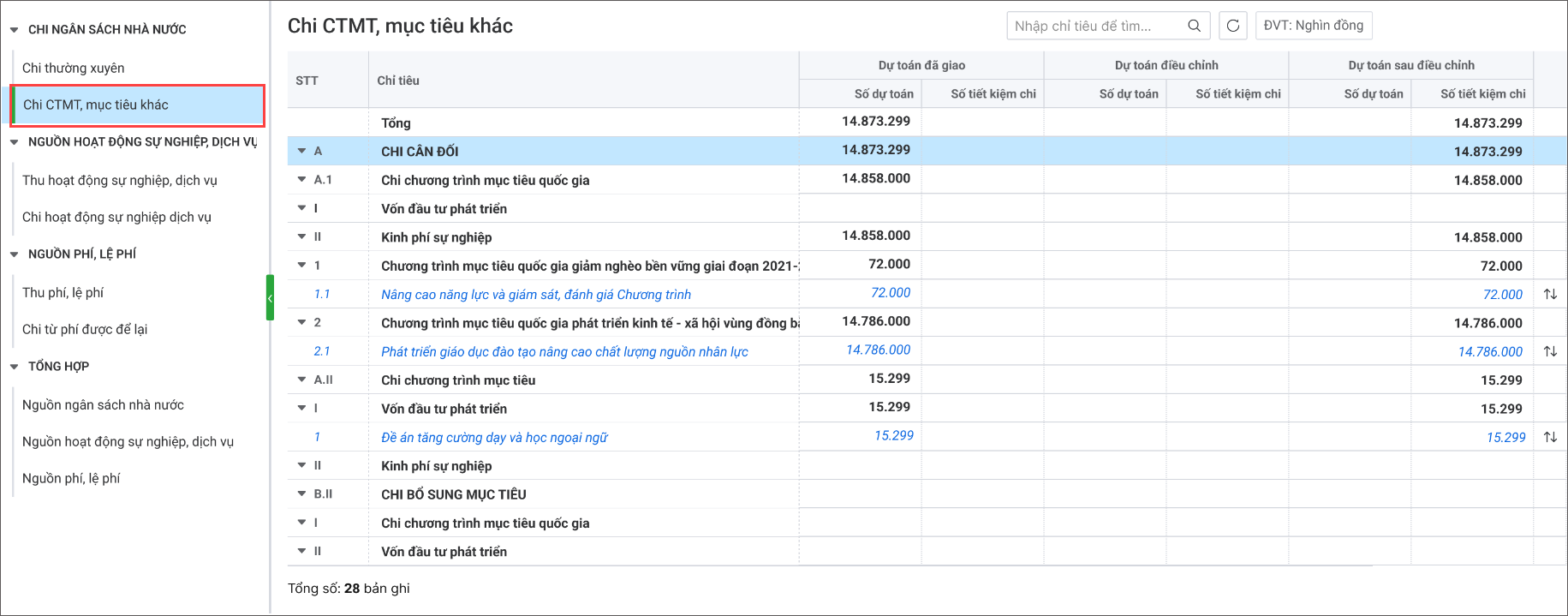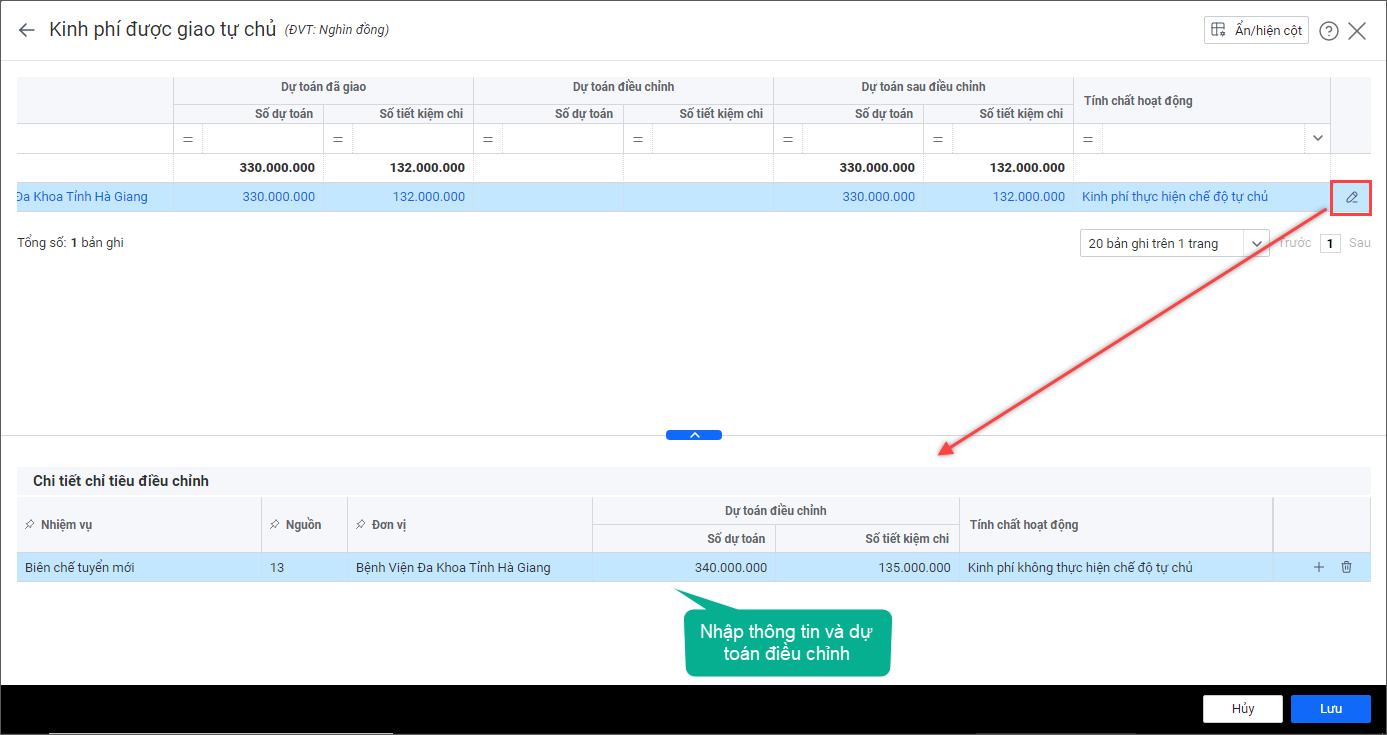 - Tùy chọn Nguồn dữ liệu dự toán đã giao cho từng đơn vị là Quyết định giao dự toán hoặc Biên bản kiểm tra dự toán.