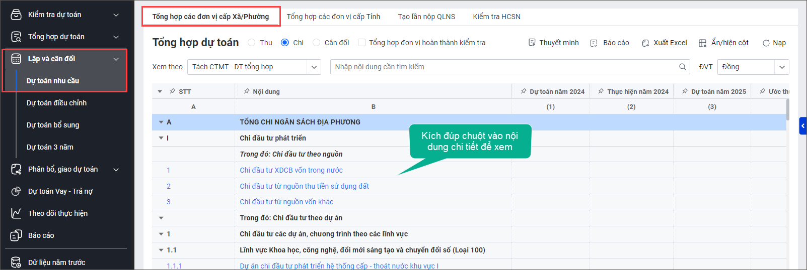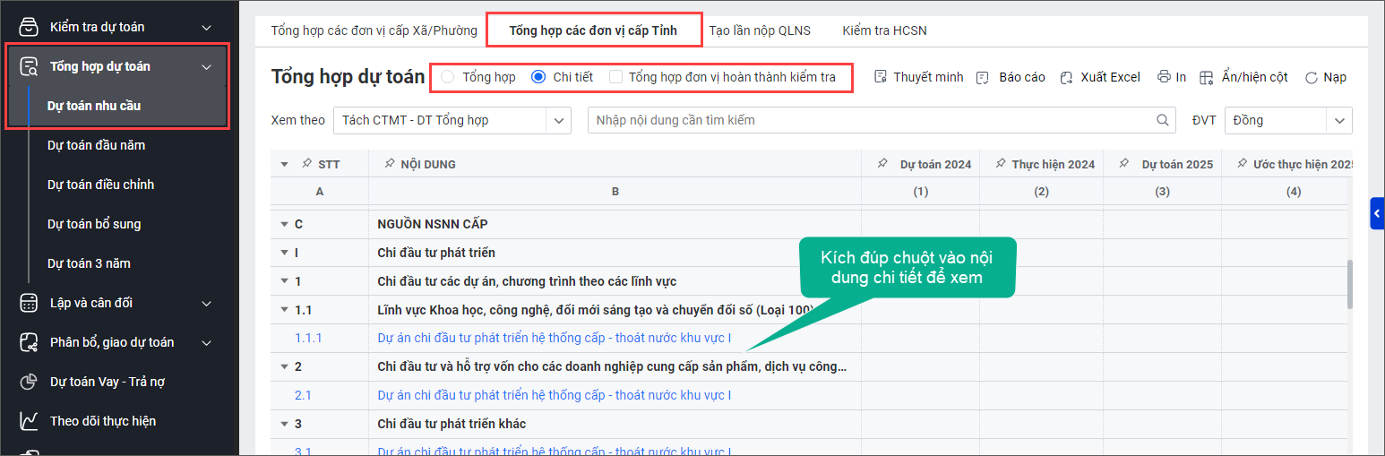 Giúp Sở tài chính tự động tổng hợp dự toán các đơn vị cấp Xã/Phường và đơn vị cấp Tỉnh.