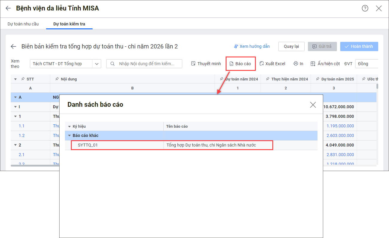 Kể từ phiên bản R13: Phần mềm đáp ứng cho Sở Y tế Tuyên Quang in biểu SYTTQ_01 và biểu SYTTQ_02: Tổng hợp Dự toán thu, chi Ngân sách Nhà nước.