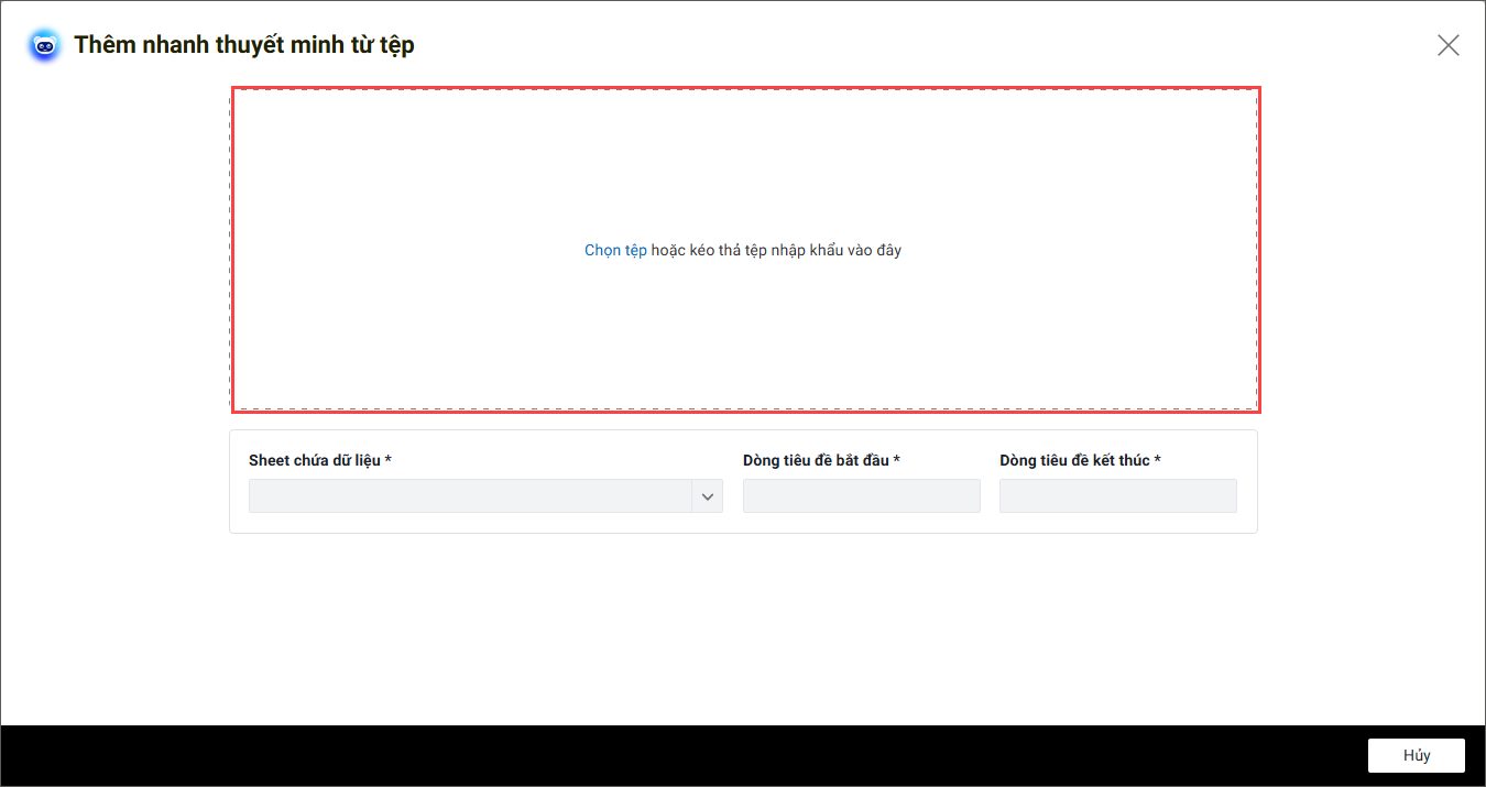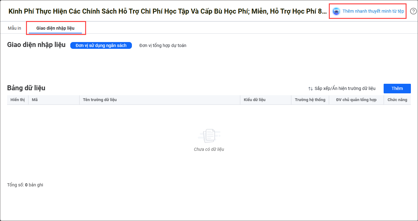 - Vào mục Giao diện nhập liệu, nhấn Thêm nhanh thuyết minh từ tệp.