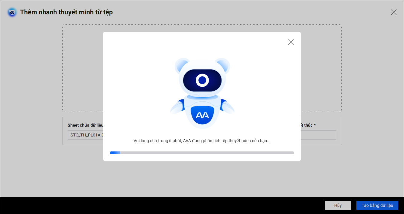 - Vui lòng chờ trong ít phút để AVA phân tích tệp dữ liệu và nhập vào phần mềm.