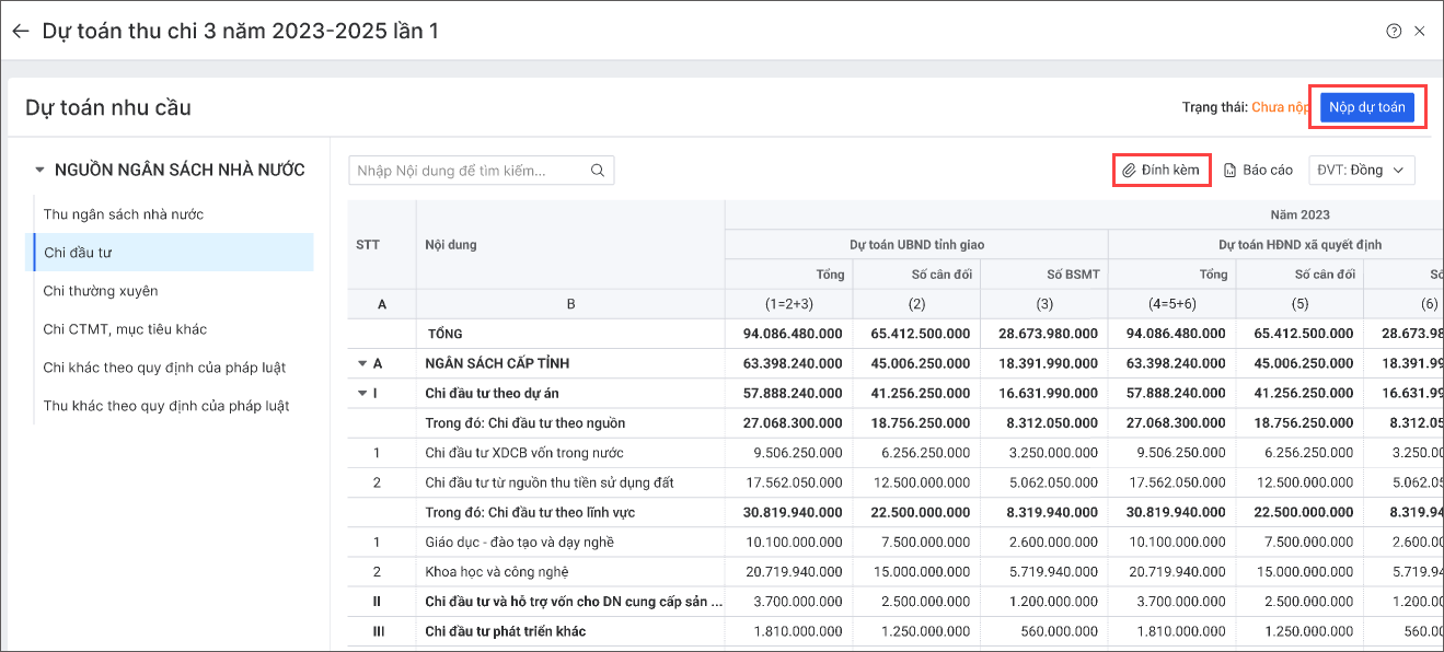Giúp đơn vị Xã/Phường nộp dự toán 3 năm lên cấp trên và xem kết quả nộp.